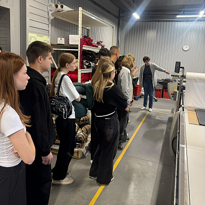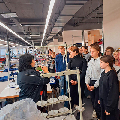 Спустя неделю будущие операторы швейного производства совершили ответный визит на нашу швейную фабрику: студенты посетили производственные цеха, пообщались с мастерами и технологами, увидели процесс подготовки к выпуску коллекций, заглянули в торговый зал и в офис компании.