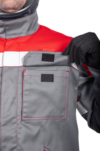 5 карманов: 2 боковых с наклонным входом, накладной с клапаном на левом боковом шве, накладной с клапаном с застежкой текстильной на правой задней половинке, накладной карман для инструментов.