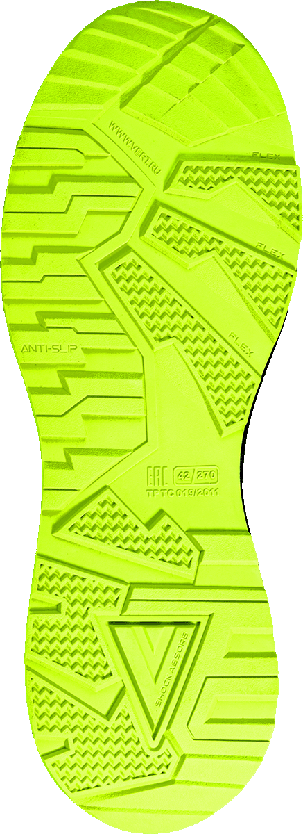 -Подошва с продуманным рисунком протектора обеспечивает наилучшую защиту от скольжения на различных типах поверхностей, гарантируя уверенность и безопасность в каждой рабочей ситуации.