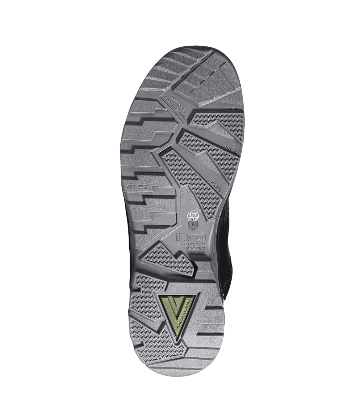 -Подошва с глубоким протектором и продуманным дизайном обеспечивает наилучшую защиту от скольжения на различных типах поверхностей, гарантируя уверенность и безопасность в каждой рабочей ситуации.