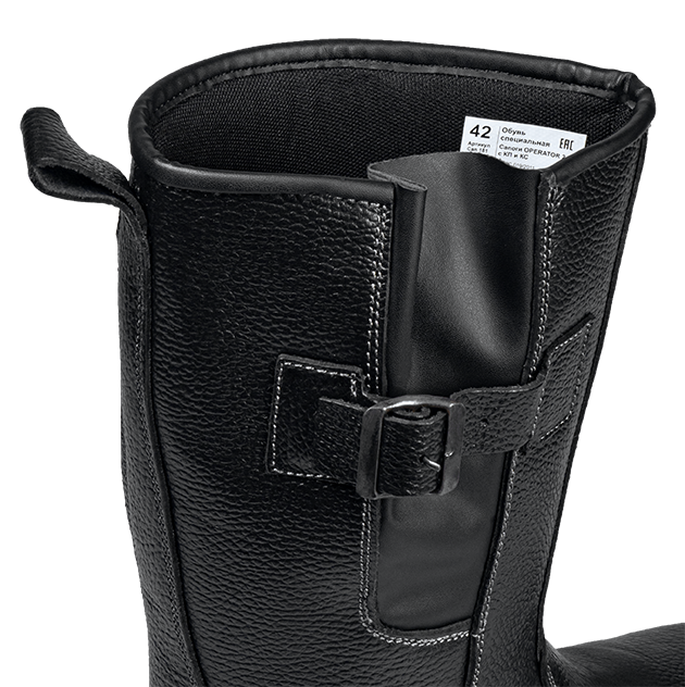 -Для удобства в эксплуатации на сапогах имеется задний наружный ремень с петлей-хлястиком из натуральной кожи.