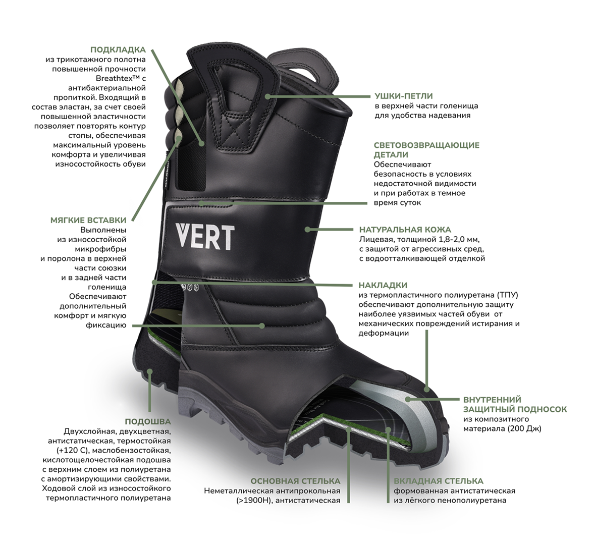 Сапоги VERT с КП и КС кожаные ПУ/ТПУ