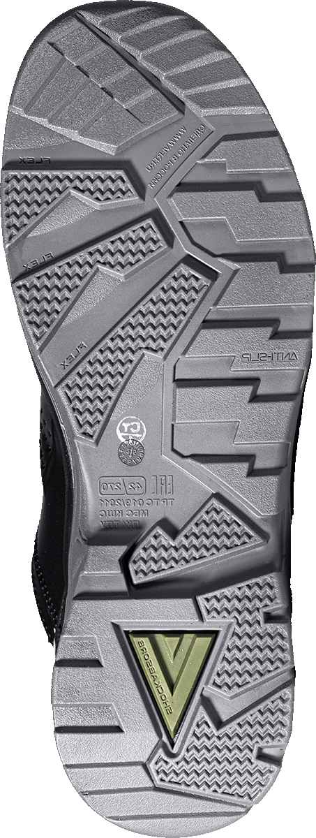 -Подошва с глубоким протектором и продуманным дизайном обеспечивает наилучшую защиту от скольжения на различных типах поверхностей, гарантируя уверенность и безопасность в каждой рабочей ситуации.