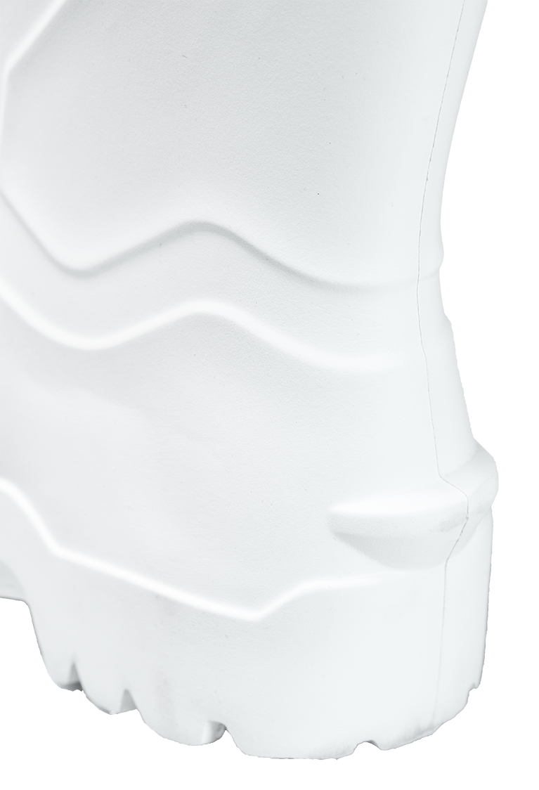 -Белый цвет позволяет легко контролировать чистоту обуви. Гладкая поверхность материала упрощает мытьё и дезинфекцию. Отсутствие швов и пористая структура препятствуют накоплению грязи и размножению бактерий.