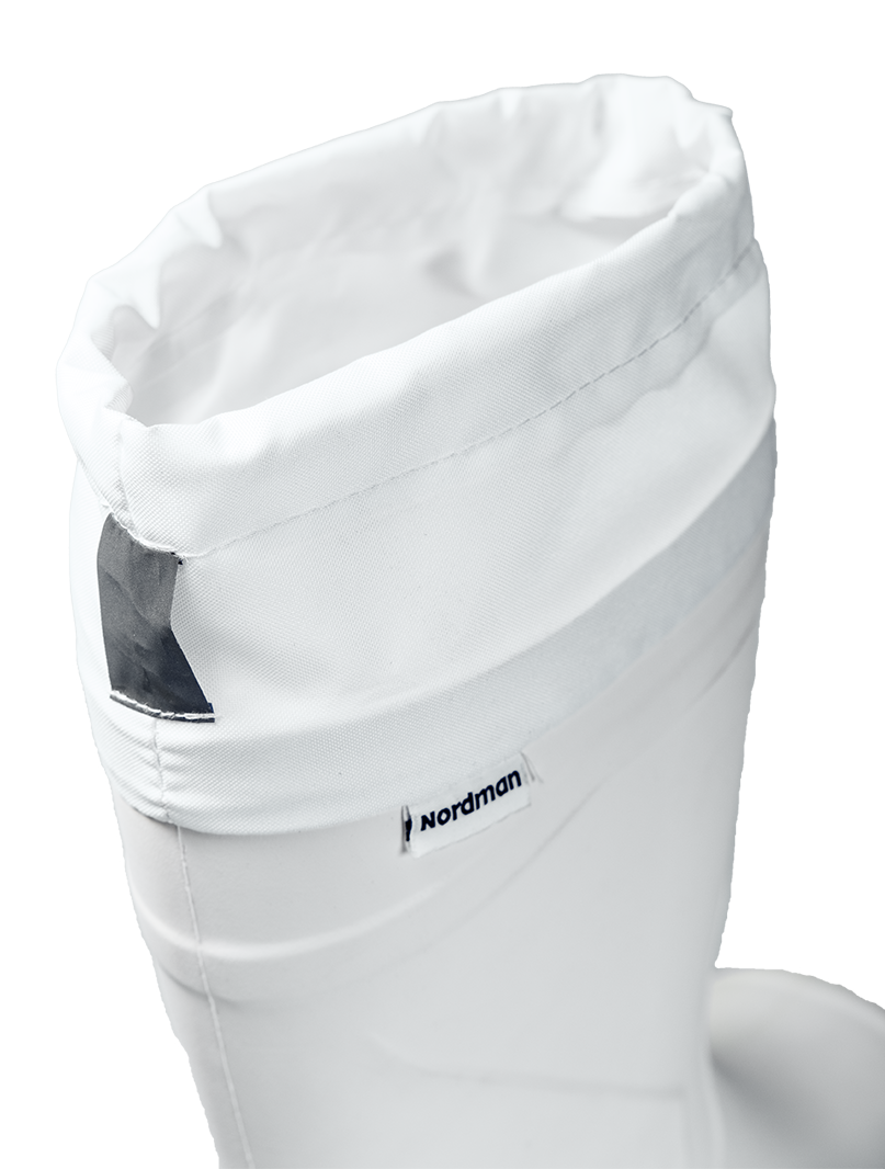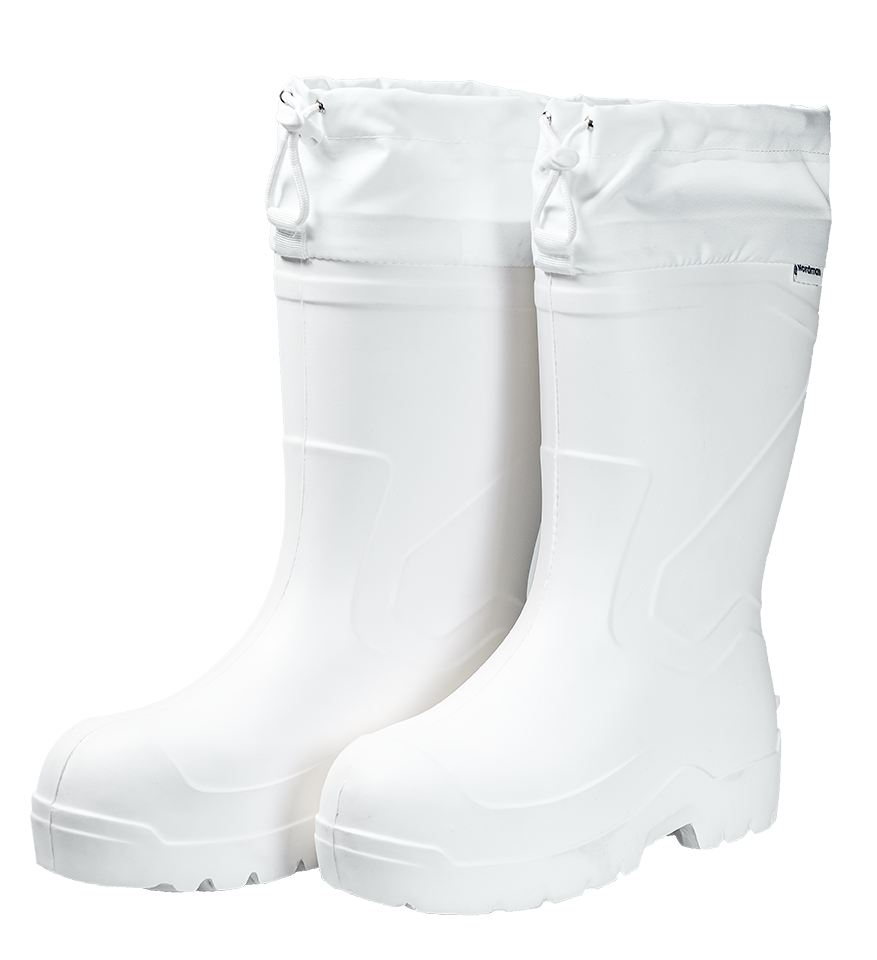 Сапоги NORDMAN ACTIVE S (МБС, КЩС) специальные белые из ЭВА с манжетой и защитными композитными подносками (200 Дж) изготовлены из высококачественного пластиката, обладающего высокой эластичностью, гибкостью и устойчивостью к различным воздействиям. Обувь соответствует принципам ХАССП (HACCP), предназначены для использования на пищевых производствах и предприятиях общественного питания. Цвет и свойства материала обеспечивают высокий уровень гигиены и безопасности, а также комфорт для персонала. Обувь предназначена для защиты от механических воздействий, от воды и растворов нетоксичных веществ, от растворов кислот, от щелочей, от нефти и нефтепродуктов, от общих производственных загрязнений.