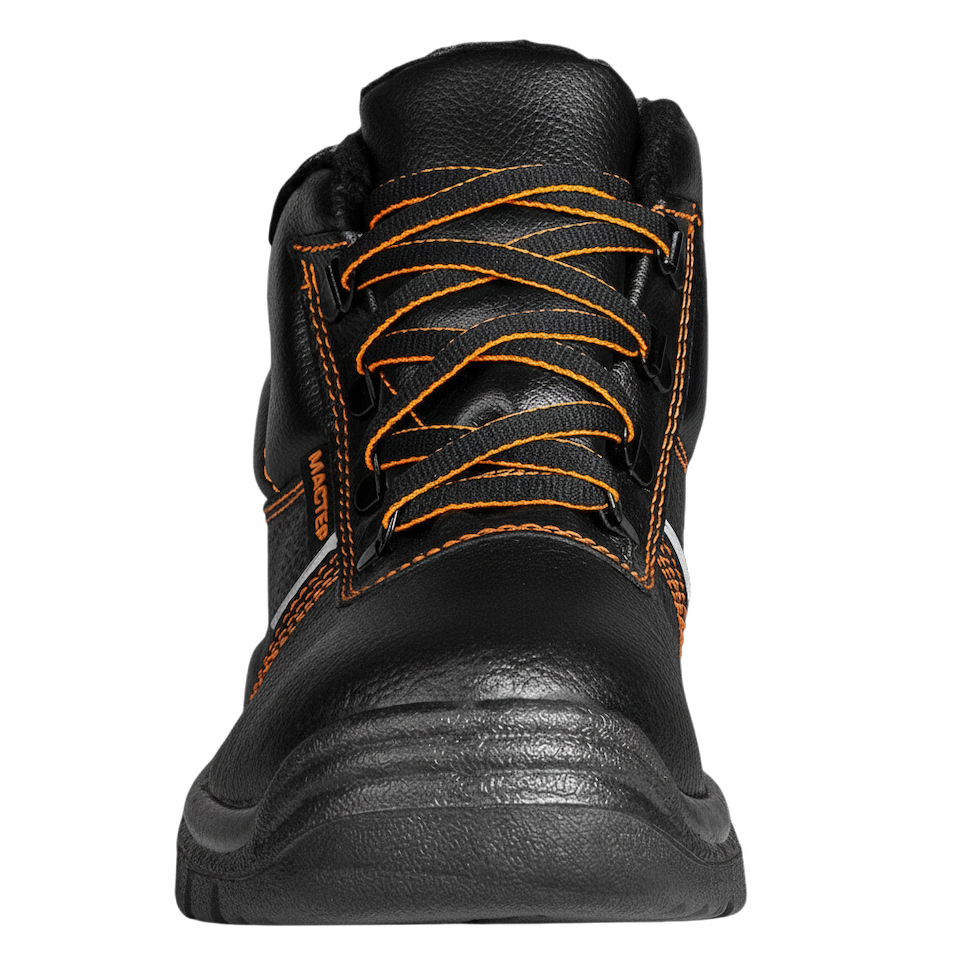 -Верх изготовлен из натуральной юфтевой кожи (союзка и берец), а мягкий кант выполнен из искусственной кожи, что обеспечивает надежную защиту, комфорт и долговечность в сложных условиях труда.