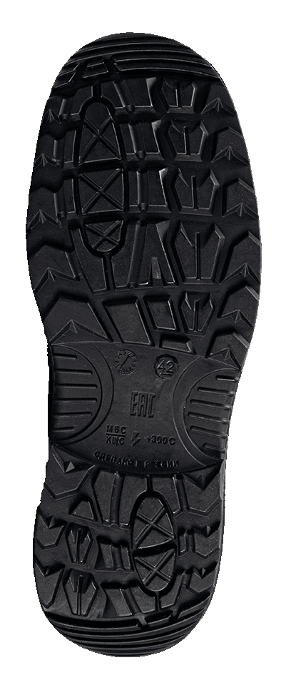 -Ходовой слой подошвы из износостойкой, термостойкой (до +300°С в течение 60 сек.), морозостойкой (-40 °С) нитрильной резины, стойкой к деформациям и истиранию.