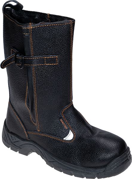 -Верх изготовлен из натуральной юфтевой кожи, что обеспечивает надежную защиту, комфорт и долговечность в сложных условиях труда.