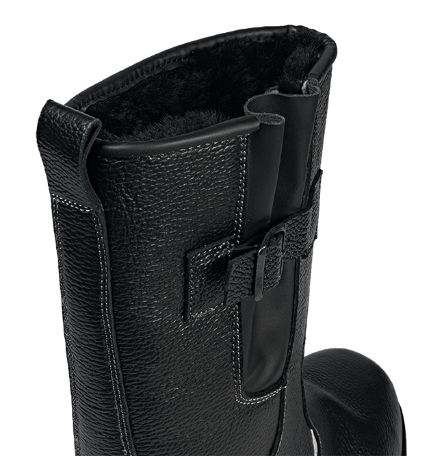 -Для удобства в эксплуатации на сапогах имеется задний наружный ремень с петлей-хлястиком из натуральной кожи.