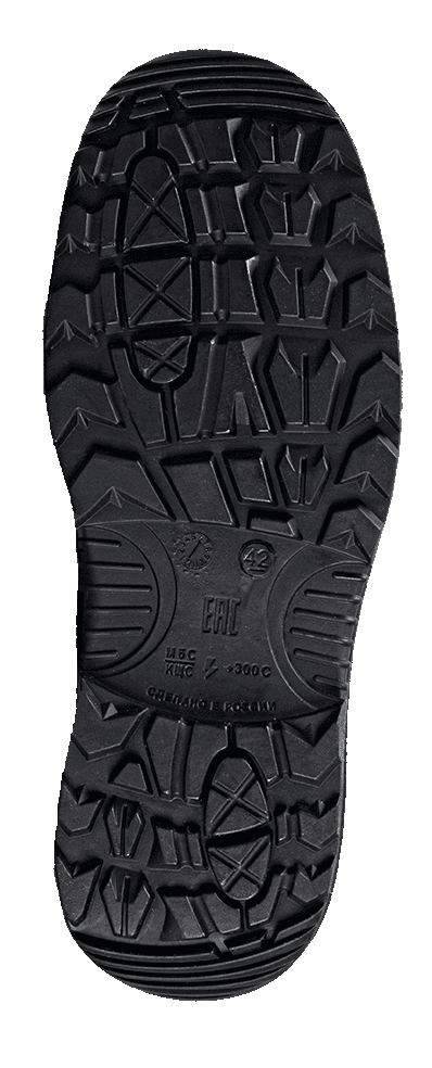 -Ходовой слой подошвы из износостойкой, термостойкой (до +300°С в течение 60 сек.), морозостойкой (-40 °С) нитрильной резины, стойкой к деформациям и истиранию.