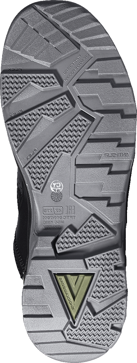 -Подошва с глубоким протектором и продуманным дизайном обеспечивает наилучшую защиту от скольжения на различных типах поверхностей, гарантируя уверенность и безопасность в каждой рабочей ситуации.