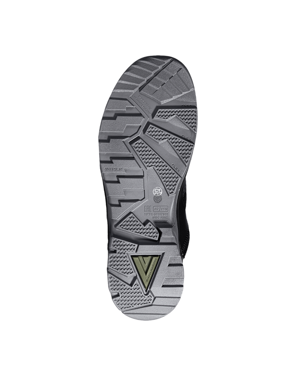 -Подошва с глубоким протектором и продуманным дизайном обеспечивает наилучшую защиту от скольжения на различных типах поверхностей, гарантируя уверенность и безопасность в каждой рабочей ситуации.