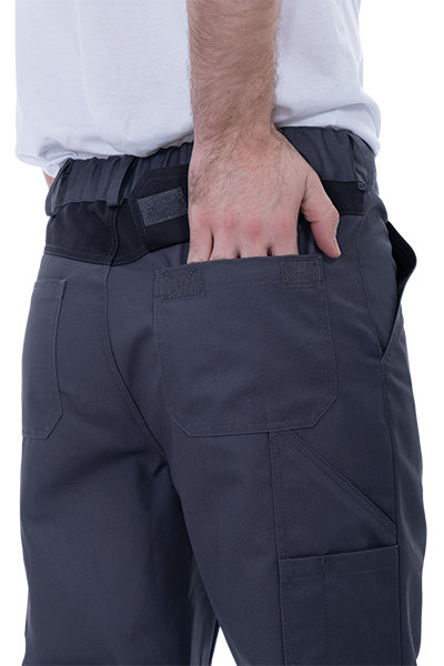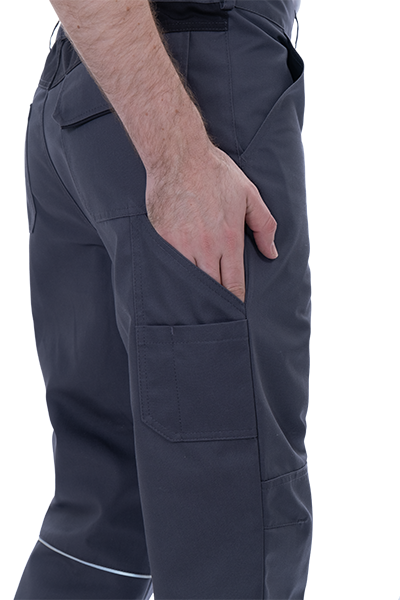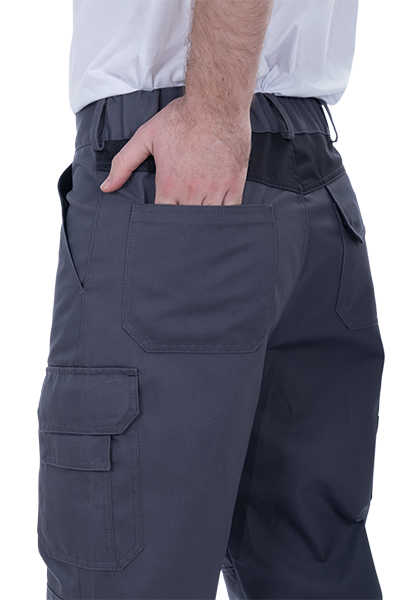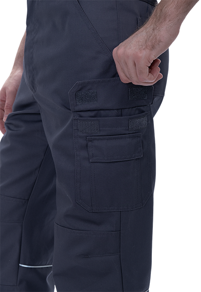 • 6 карманов: 2 боковых с наклонным входом, 2 накладных на задней половинке, 1 карман для инструментов на правом боковом шве, 1 накладной с клапаном на ленте контакт, с малым карманом на левом боковом шве