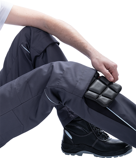 • световозвращающая двухсторонняя лента в виде канта под наколенником, сзади брюк в области подколенной ямки