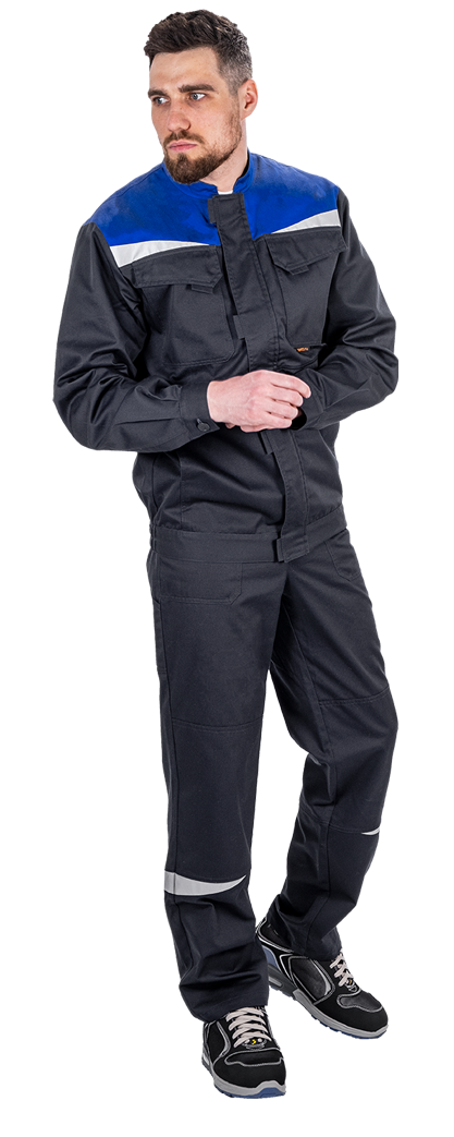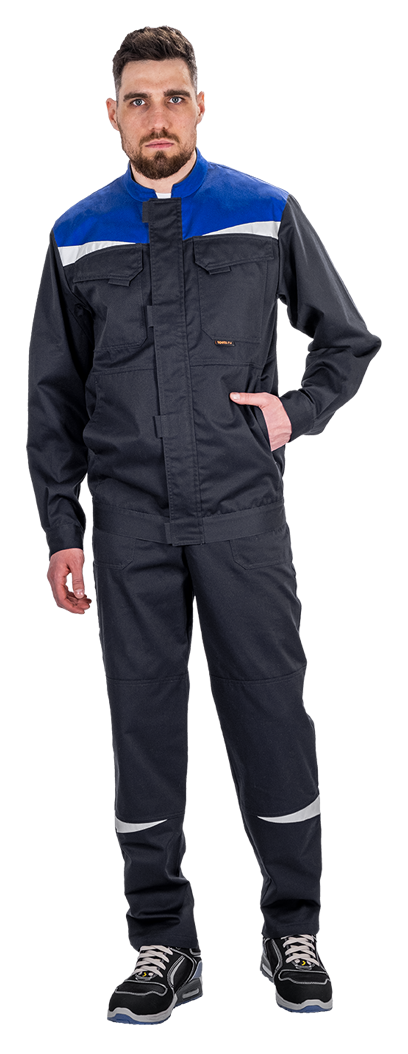Костюм состоит из куртки и полукомбинезона. В костюме используются деталифигурной формы из световозвращающего материала.