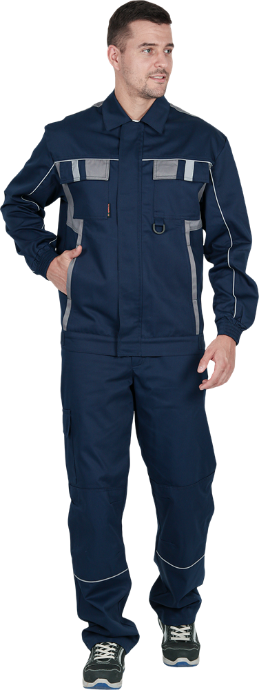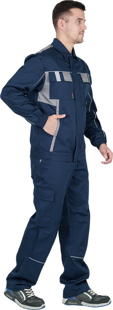 Костюм состоит из куртки и брюк.