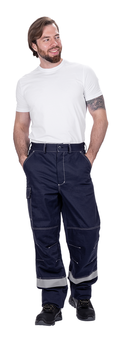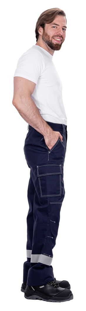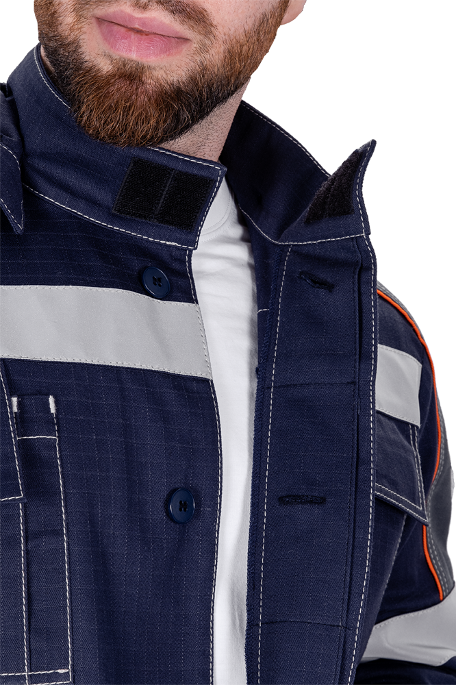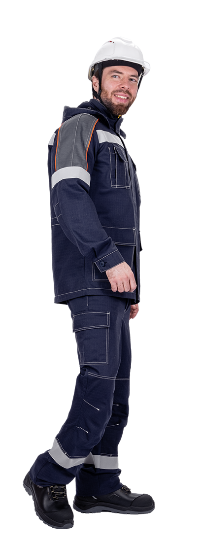 В костюме используется огнестойкая световозвращающая полоса шириной 50 мм. Огнестойкие нитки Nomex.