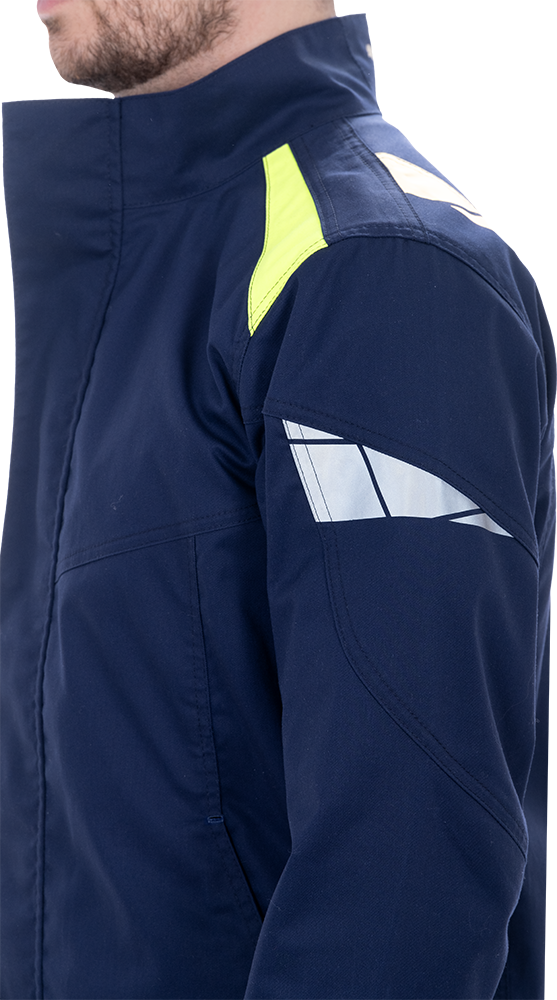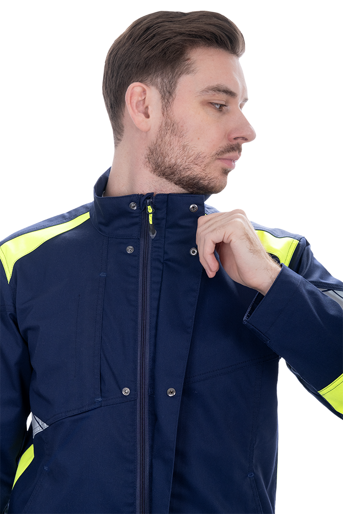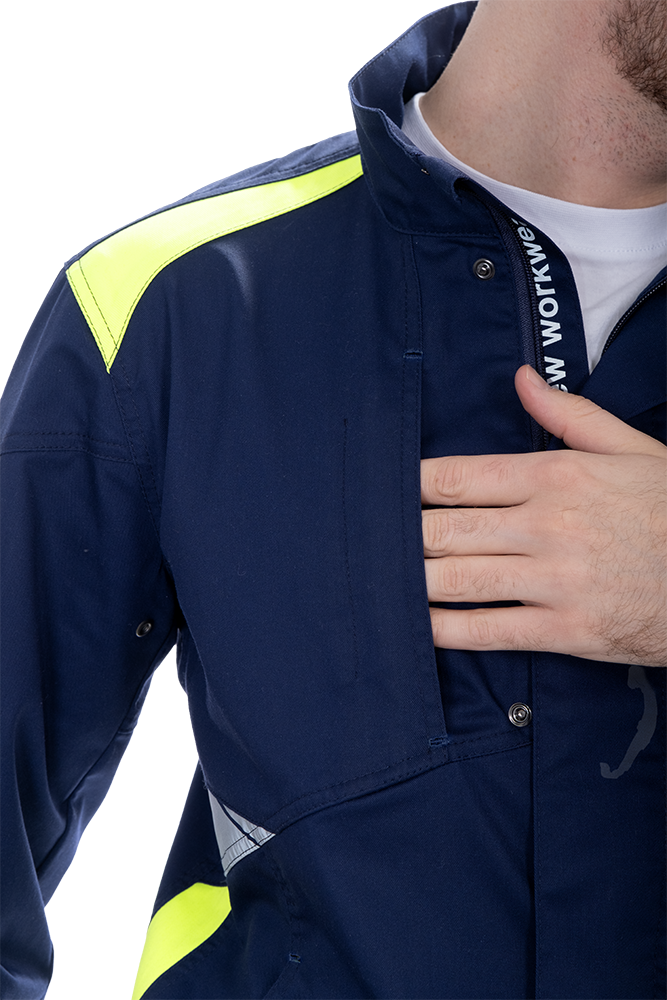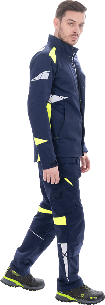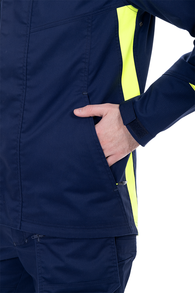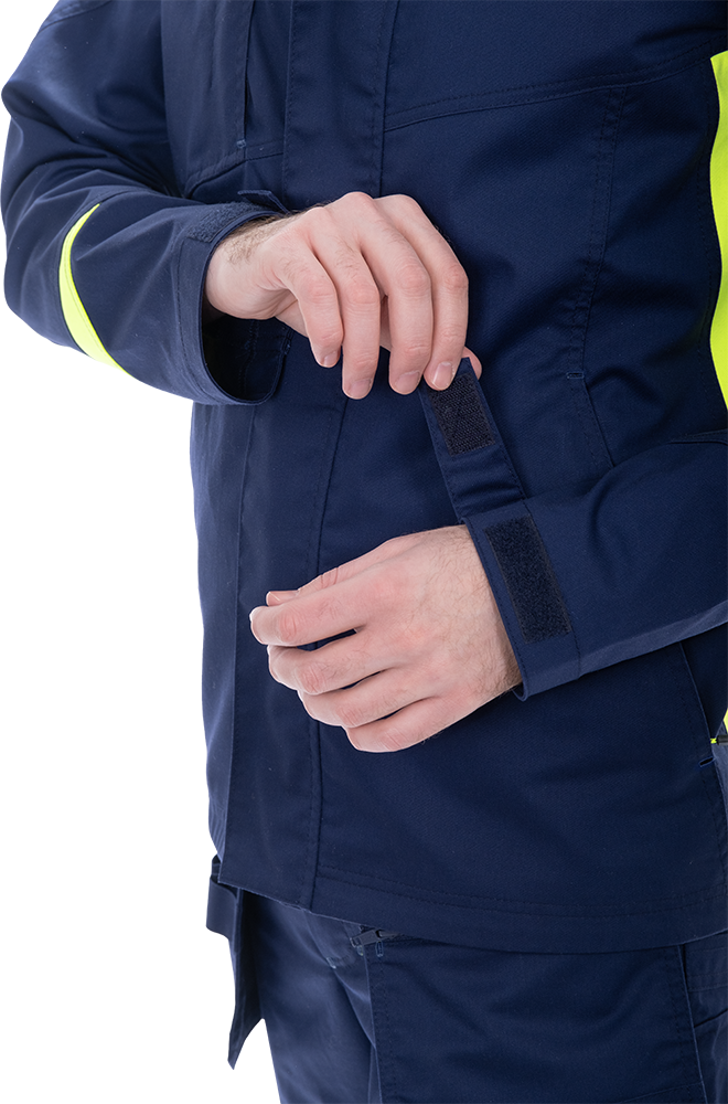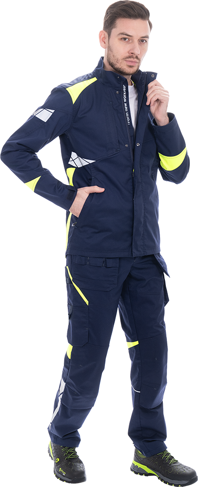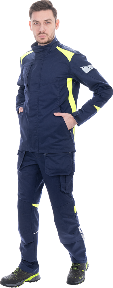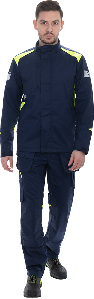 Изделие выполнено из инновационной ткани «Индустриаль Флекс» с добавлением эластолефина, которая обеспечивает высокую износостойкость и свободу движений.