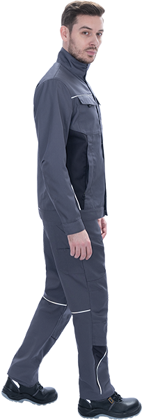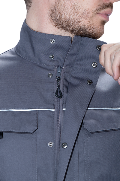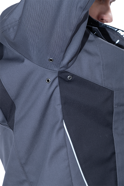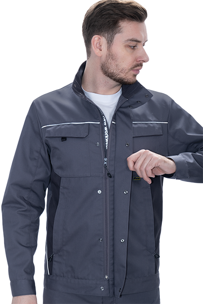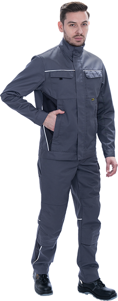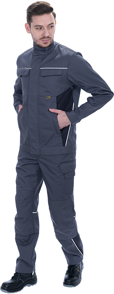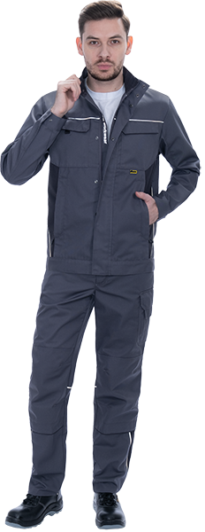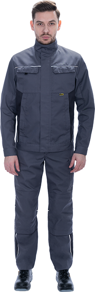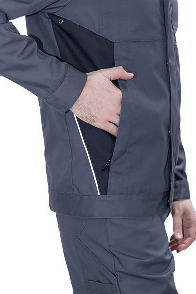• световозвращающая двухсторонняя лента в виде канта по кокеткам полочек, по наклонным боковым вставкам куртки, по центральной части спинки вдоль пояса обеспечат видимость работника при плохом освещении и в темное время суток