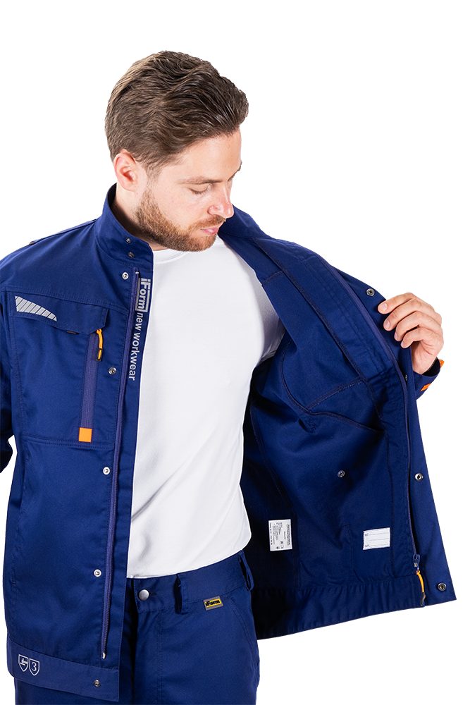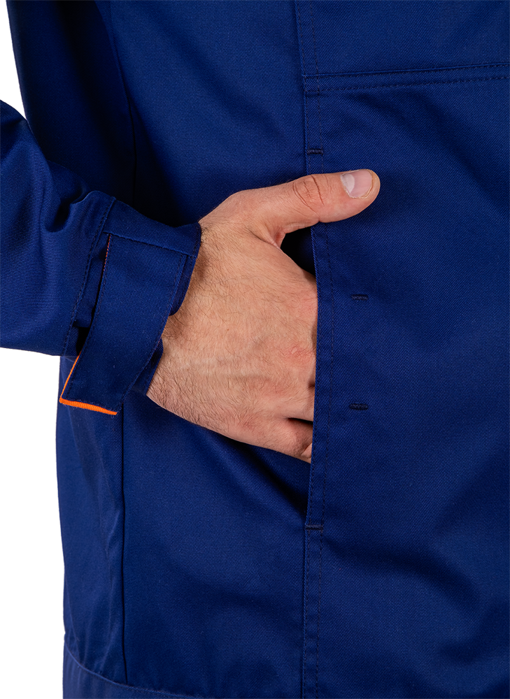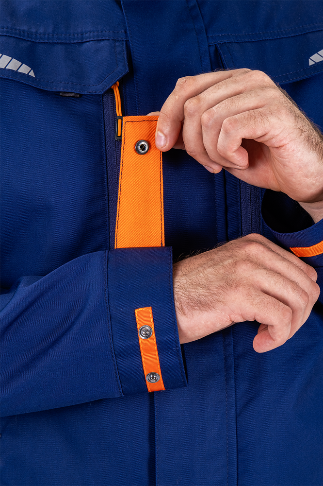 Современная рабочая куртка для промышленности, идеально подходящая для использования в жарких условиях. За счёт  эластичных вставок, продуманной вентиляции и высокого содержания хлопка в составе ткани куртка, обеспечивает комфортную терморегуляцию, при этом сохраняя надёжную защиту и свободу движений.