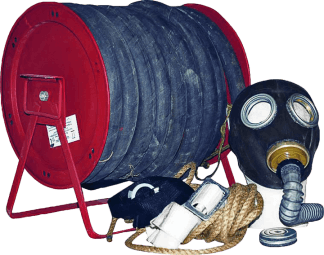 Комплектация противогаза ПШ-1Б: армированный шланг 10м на барабане, 2 маски ШМП.